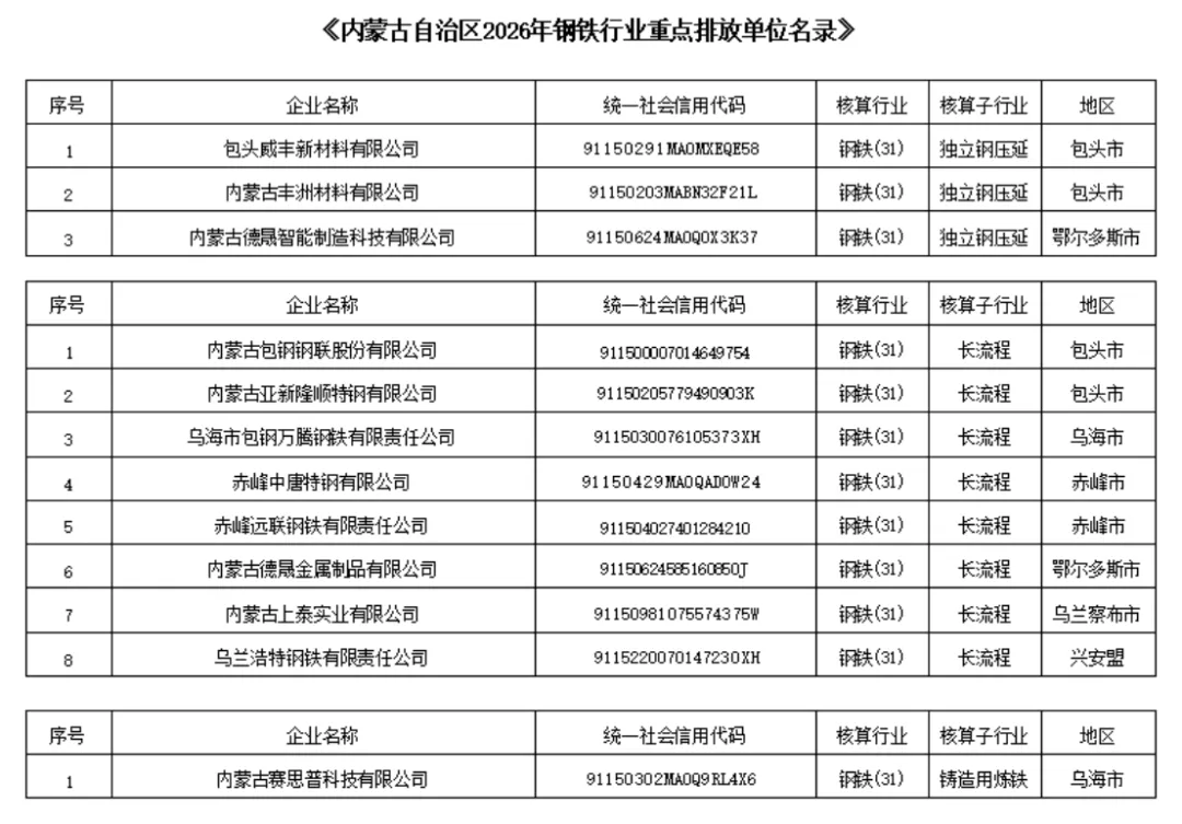 随着全国碳市场工作的推进,据统计,全国已有29个省(市)发布2026年度碳市场重点排放单位名单 ,涉及电力、钢铁、水泥、铝冶炼等行业企业共3770家。各省市具体名单如下: