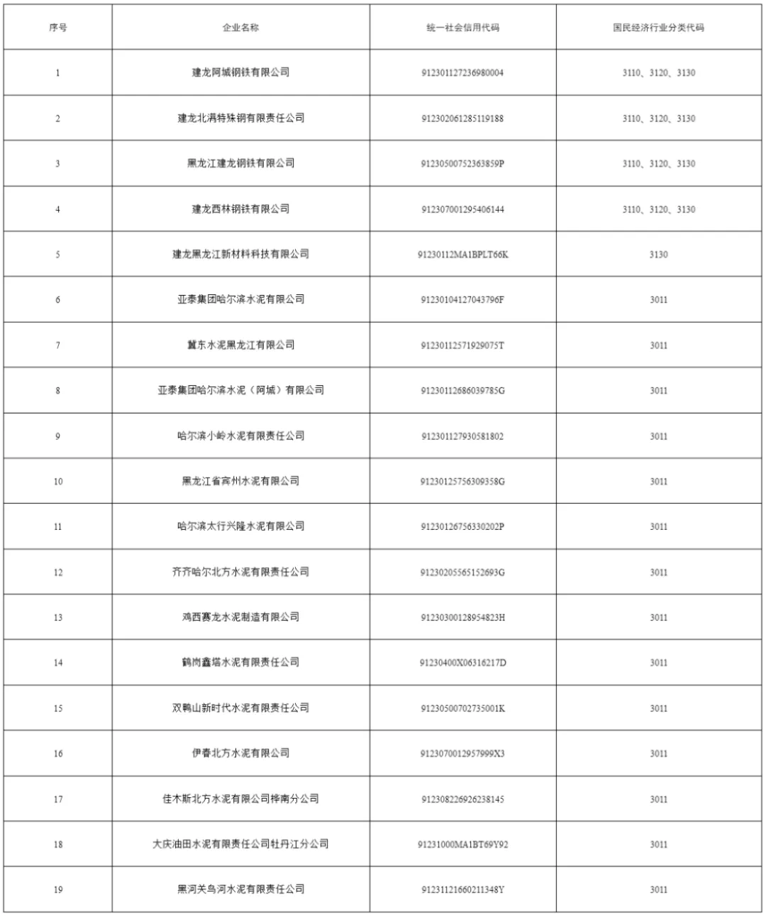 黑龙江省2026年度纳入全国碳排放权交易市场共134家,其中发电115家,钢铁5家,水泥14家。