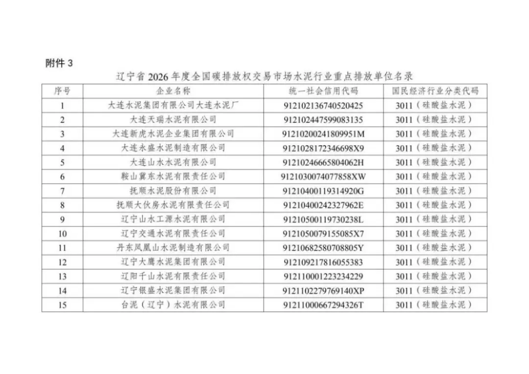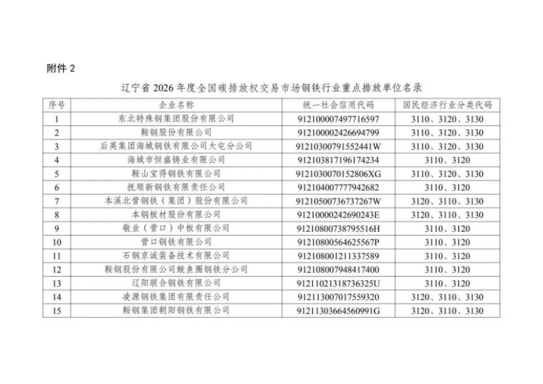 辽宁省2026年度纳入全国碳排放权交易市场共128家,其中发电87家,钢铁15家,水泥25家,铝冶炼1家。