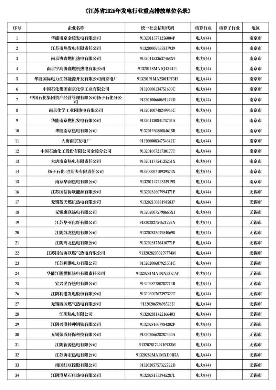 江苏省2026年度纳入全国碳排放权交易市场共279家,其中发电218家,钢铁47家,水泥14家。