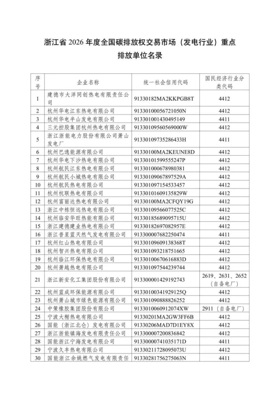 浙江省2026年度纳入全国碳排放权交易市场共230家,其中发电160家,钢铁45家,水泥25家。
