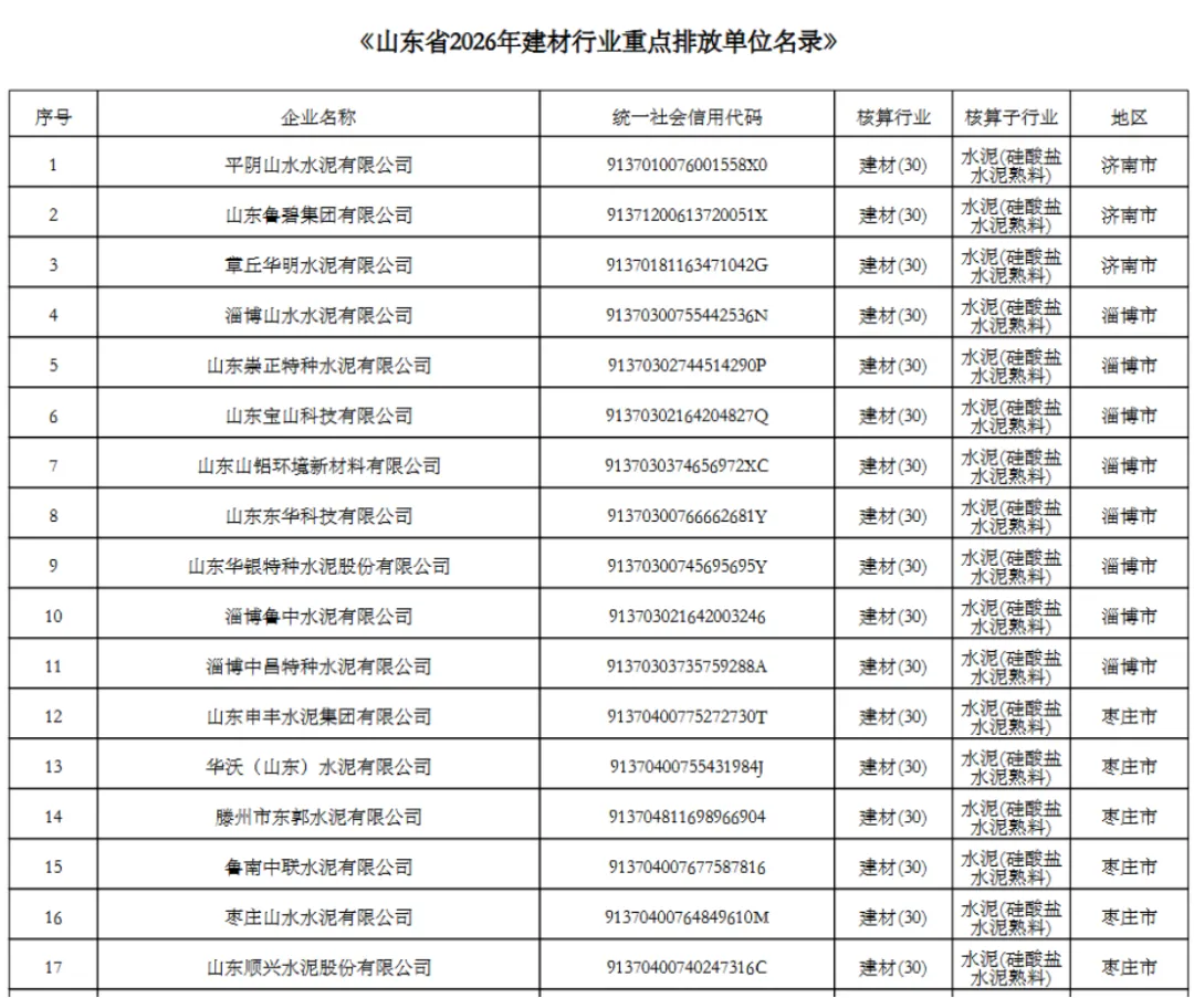 山东省2026年度纳入全国碳排放权交易市场共400家,其中发电287家,钢铁44家,水泥59家,铝冶炼10家。