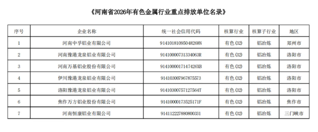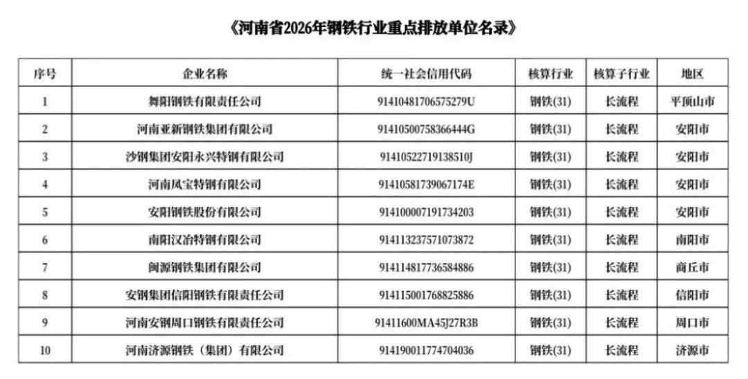 河南省2026年度纳入全国碳排放权交易市场共181家,其中发电114家,钢铁10家,水泥50家,铝冶炼7家。