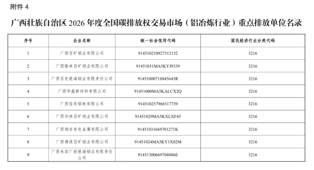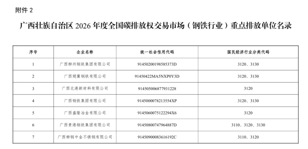 广西省2026年度纳入全国碳排放权交易市场共109家,其中发电48家,钢铁7家,水泥45家,铝冶炼9家。