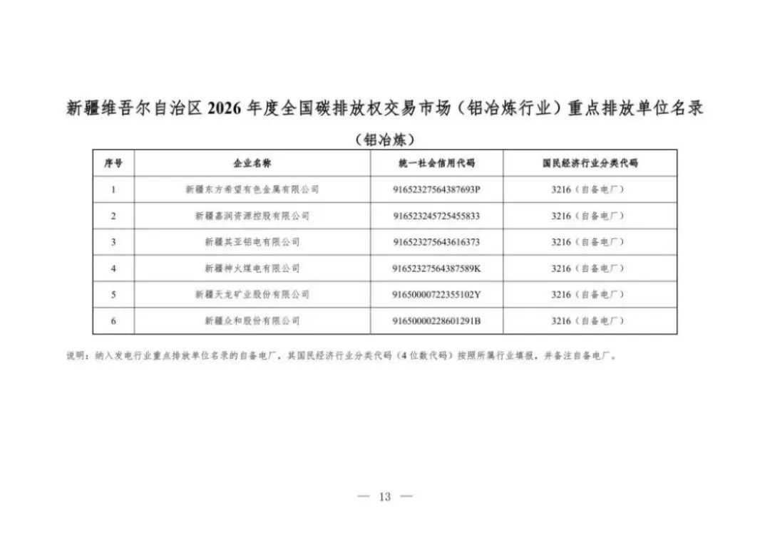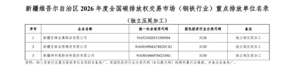 新疆2026年度纳入全国碳排放权交易市场共167家,其中发电100家,钢铁14家,水泥47家,铝冶炼6家。