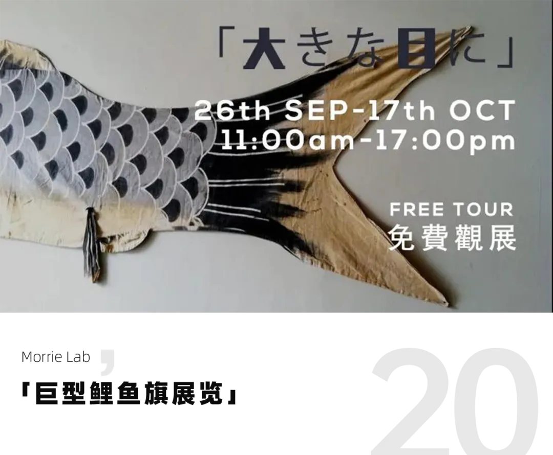 「大きな目に」的翻译是「巨大的眼睛裡」,在这些眼睛里,我们似乎看见了匠人们挑灯作画的辛勤和期盼。这一次展出的鲤鱼旗,部分是昭和时期的匠人们留下来的手工作品。除了麻布染工艺,还有比较稀有的和纸彩绘工艺,是不可多得的珍贵古物。