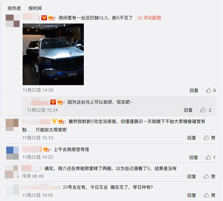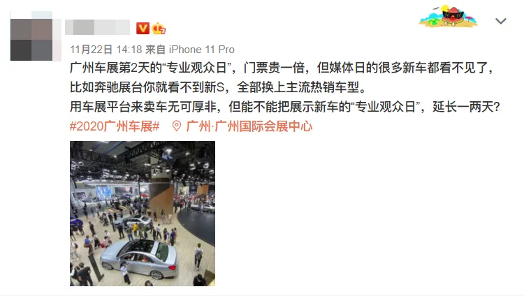 不过,有车评人在现场发现,在广州车展第二天也就是“专业观众日”,媒体日展出的很多新车都不见了,比如奔驰展台的新S级,全部换上了主流热销车型。