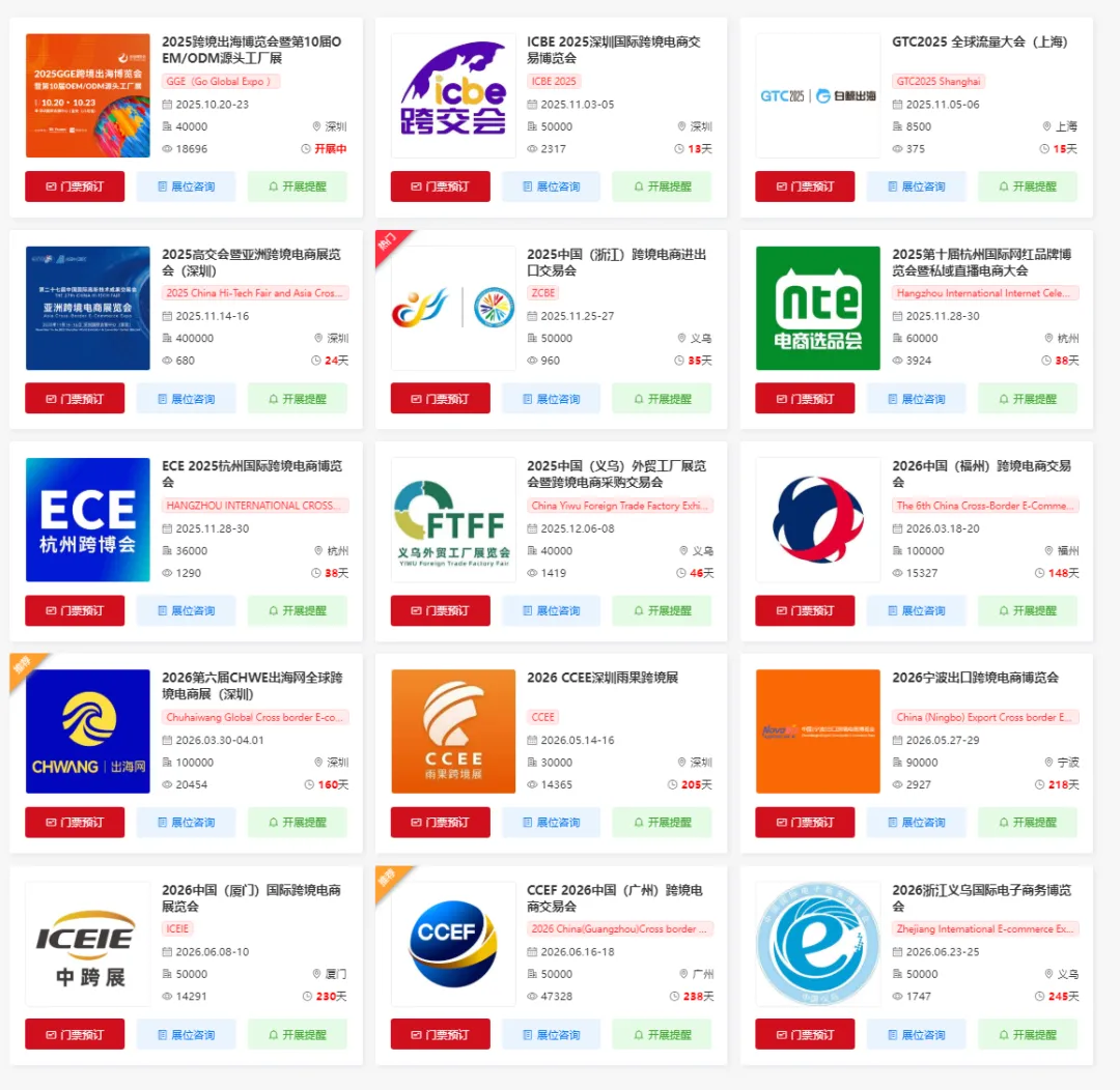 以下是2025年全国跨境电商展11-12月排期一览表整理,按时间顺序排列。