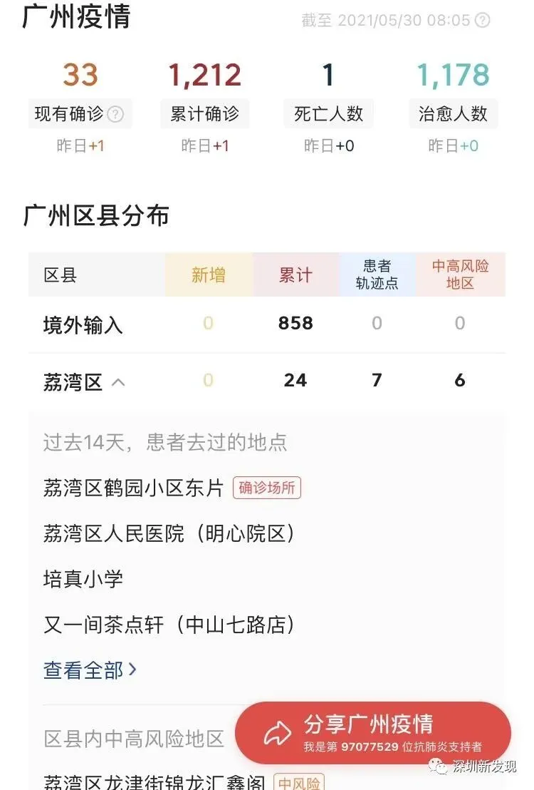 2021年5月30日止,广州新增12例本土无症状感染者。