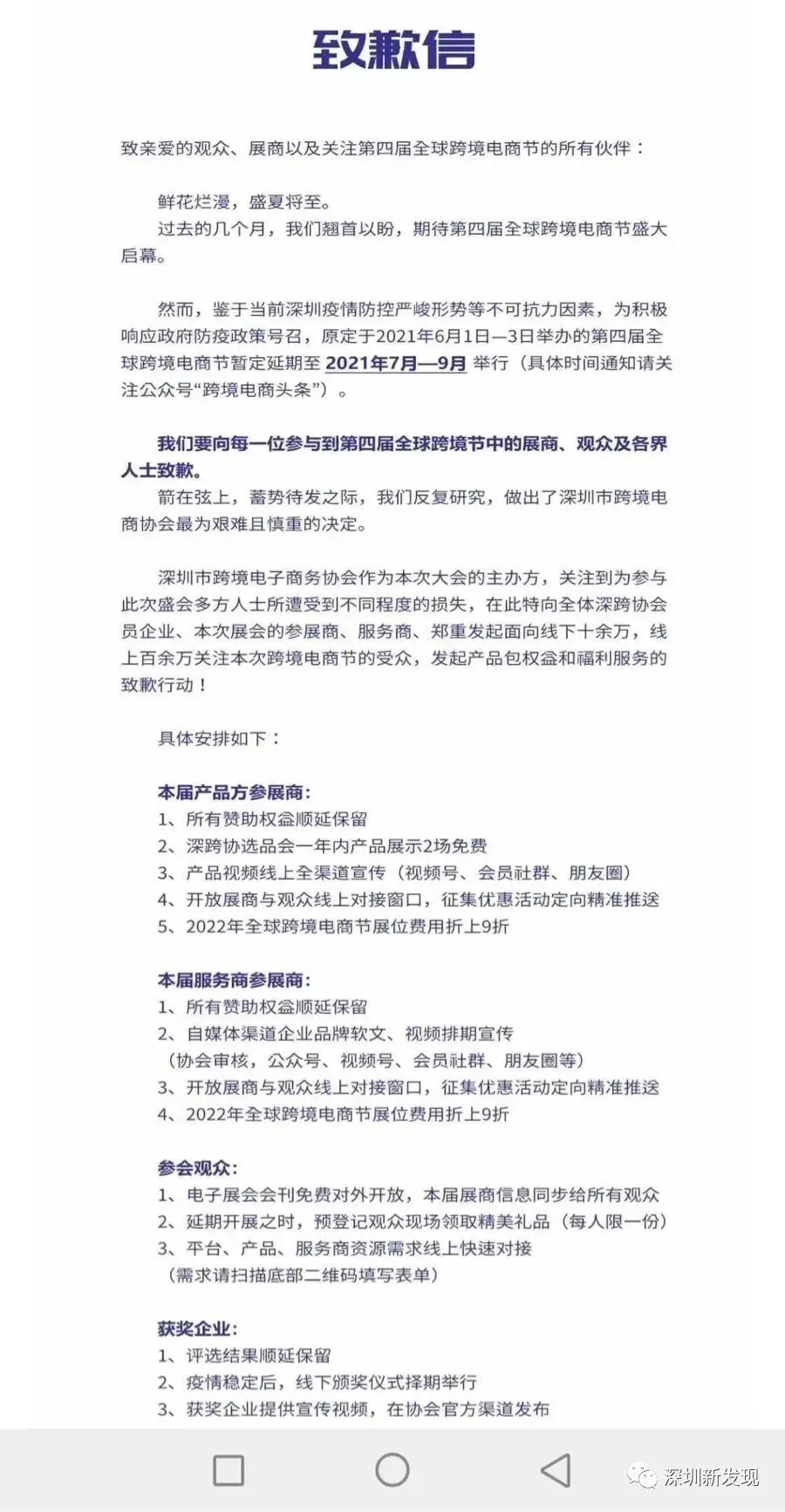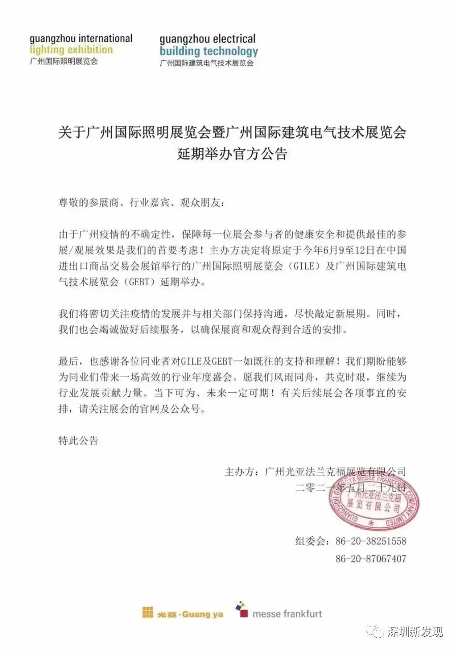 原定于6月份的深圳跨境电商展览会、广州国际照明展览会现在已经全部取消,延期另行通知!