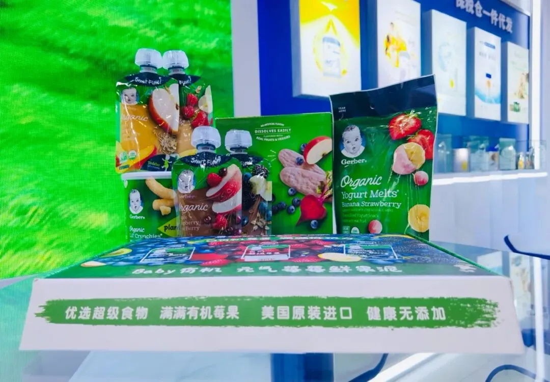 这次,雀巢惠氏营养品跨境电商展出了跨境婴幼儿配方奶粉,包括启赋旗下最先进的配方海外版启赋HMO+、海外版启赋羊奶、海外版启赋敏适、新西兰铂臻A2以及能恩全护。此次展出的跨境先进配方奶粉中,大部分都含有母乳低聚糖HMO。同时还展出了海外嘉宝有机米粉、果泥及泡芙等婴幼儿辅、零食系列产品。