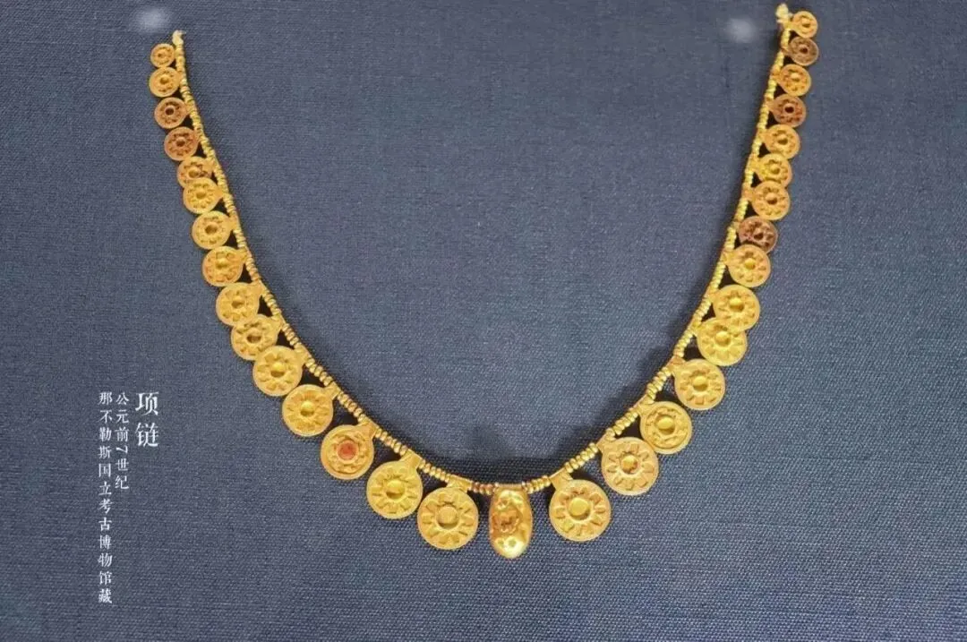 在展厅里,黄金饰物流光暗影,金饰璀璨,吸引着观众的目光。我们很难想象两千多年前的伊特鲁里亚人是如何打造如此精雅的饰物,以至于它们的辉光经过时间的洗礼依然使今人折服。