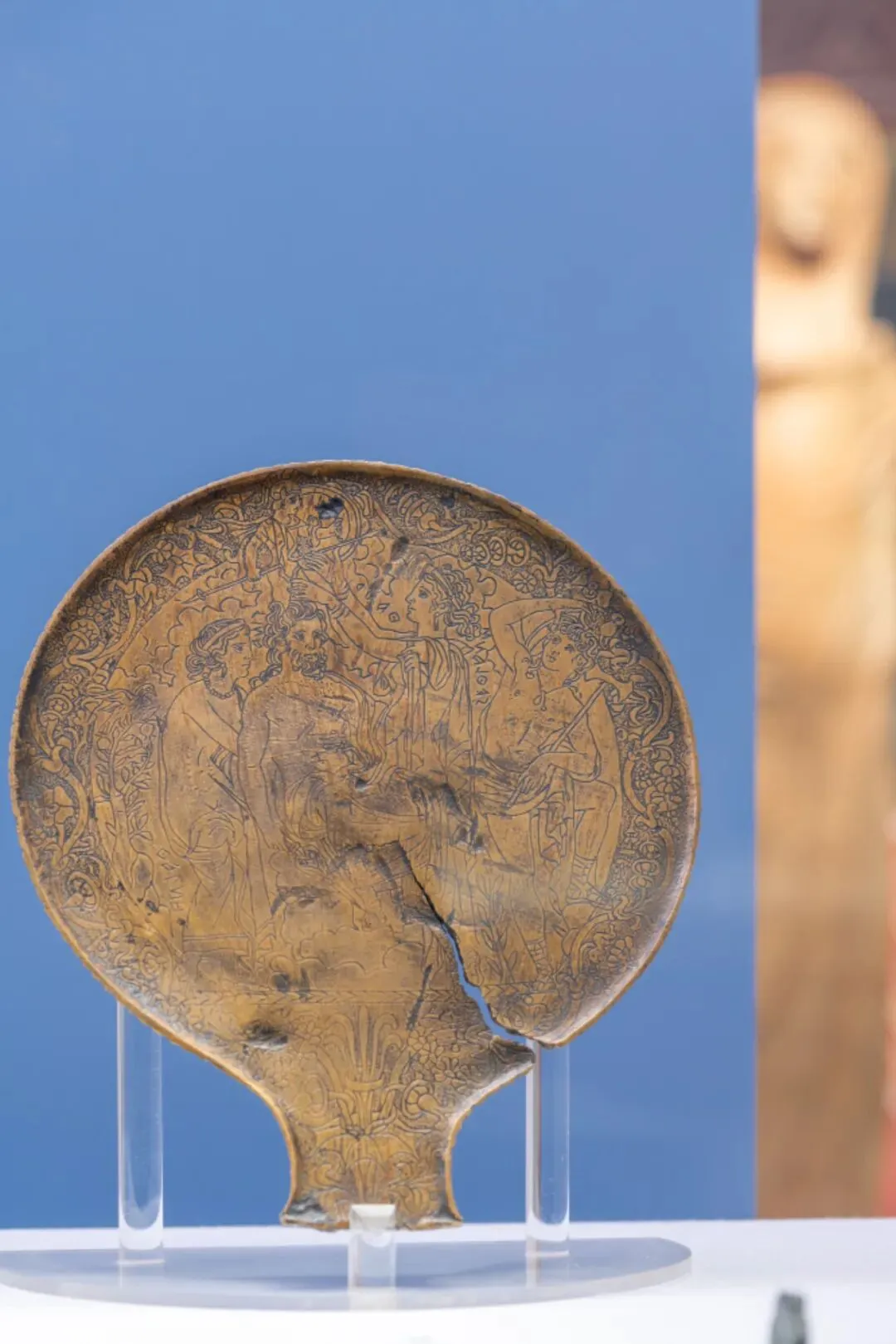 因较好的保存状态和刻画精细的神话故事,这面铜镜自17世纪出土之后便声名远扬,本次展览也是该铜镜的首次亚洲之旅。