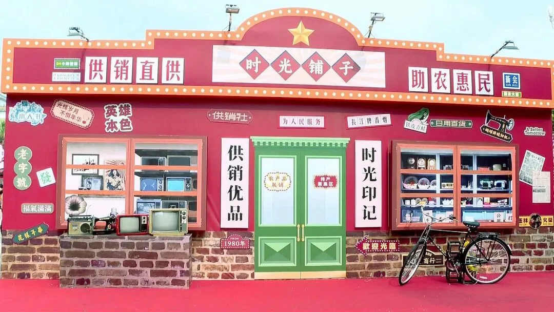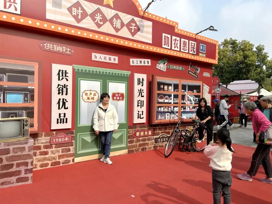 现场精心复刻了20世纪80、90年代供销社的经典场景,复古单车、老式电视机、怀旧缝纫机有序陈列,搭配“供销直供”的复古广告牌,拉满怀旧氛围感,瞬间唤起不少市民的记忆。“小朋友以前没见过这些老物件,觉得特别新奇、有趣。”市民谢小姐带着孩子细细观赏,满脸笑意地说。