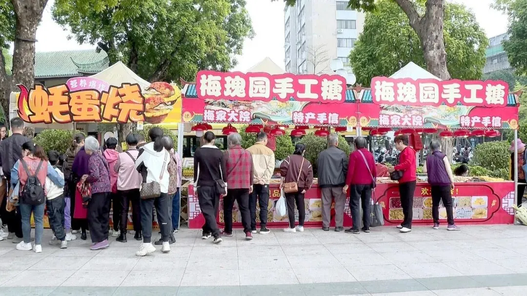 现场还设有地方特色美食、非遗体验和家电促销等多个特色摊位,丰富多元的业态布局,让市民和游客在沉浸式感受节日氛围的同时,一站式满足购物、体验等多重需求。