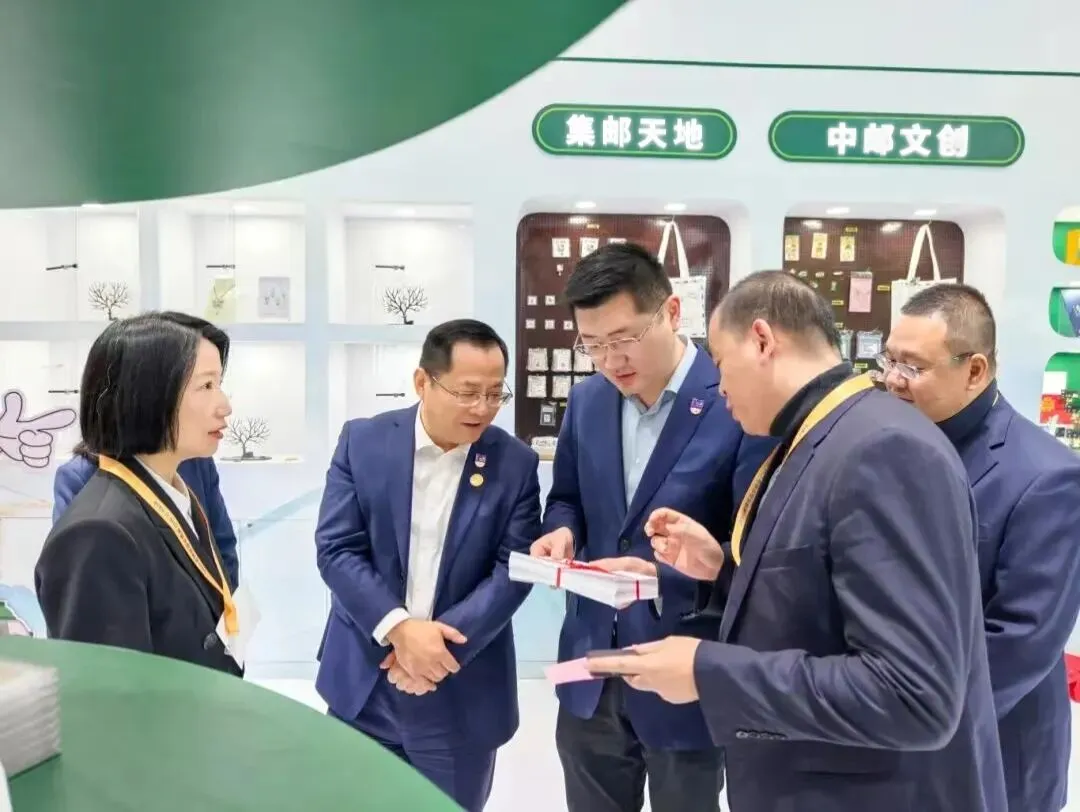 △双方领导在工作人员引导下参观邮政展台,近距离感受邮政文化与现代商贸的融合魅力,共同展望未来的合作愿景