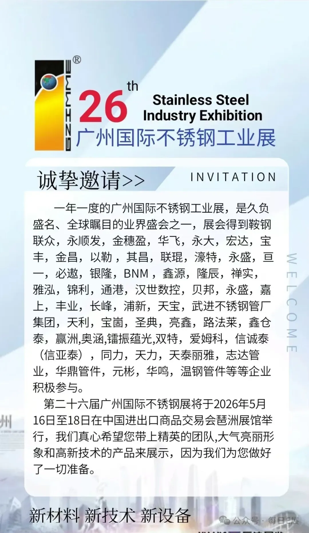 2026第二十六届广州国际不锈钢工业展|5月16-18日|广州.广交会展馆