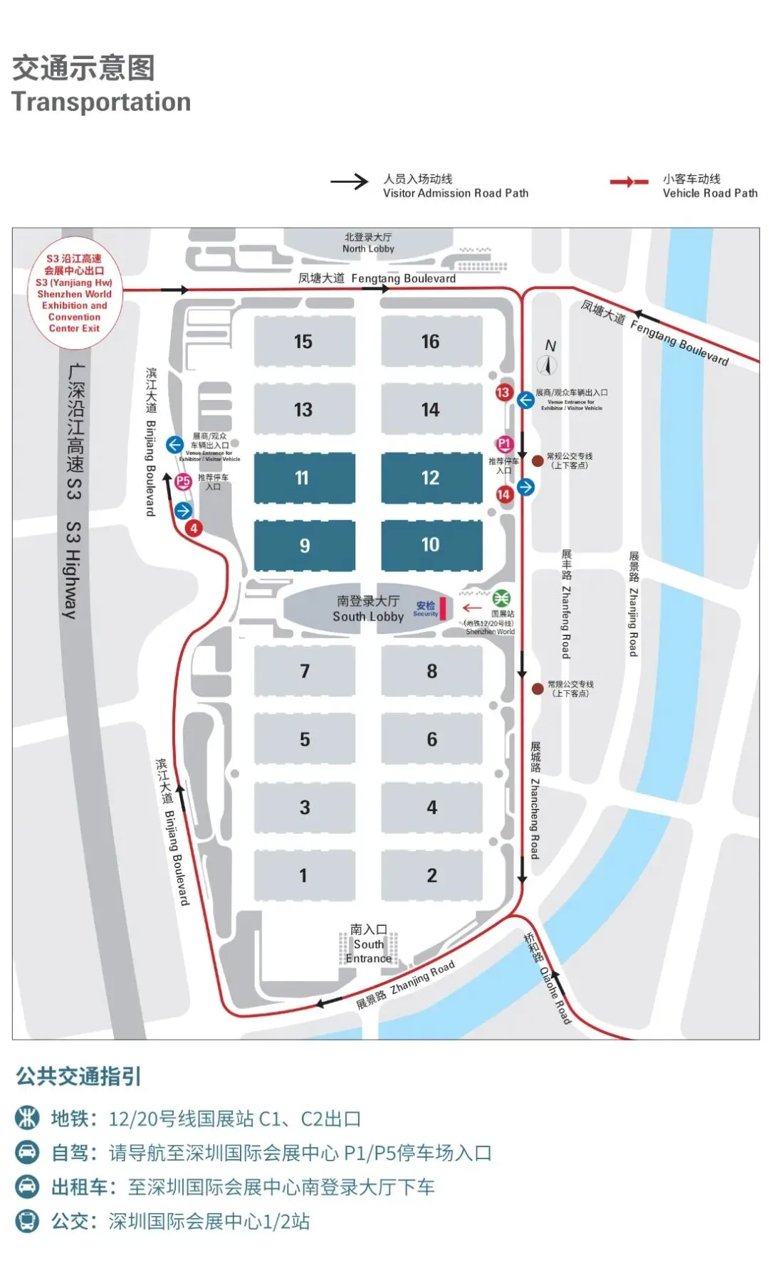 建议大家绿色出行,深圳地铁12号线和20号线现已开通,可直达展馆登录大厅噢~