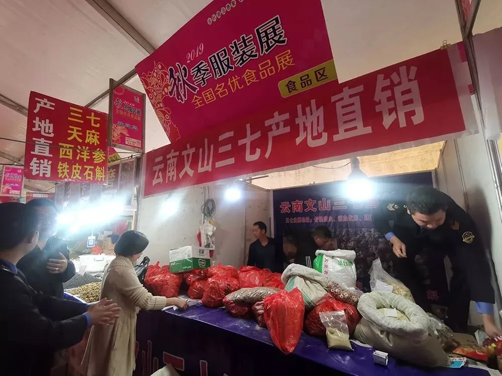 近日,有市民向恩施市市场监管局举报,反映在州文化中心广场举办的“2019恩施秋季服装展 全国名优食品展”的展销会上,购买的云南文山三七怀疑是假的,有可能是在加工打粉过程中被调包了。10月23日,恩施市市场监管局执法人员与恩施晚报记者一起对展销会上三家云南文山三七产地直销摊点进行了暗访。