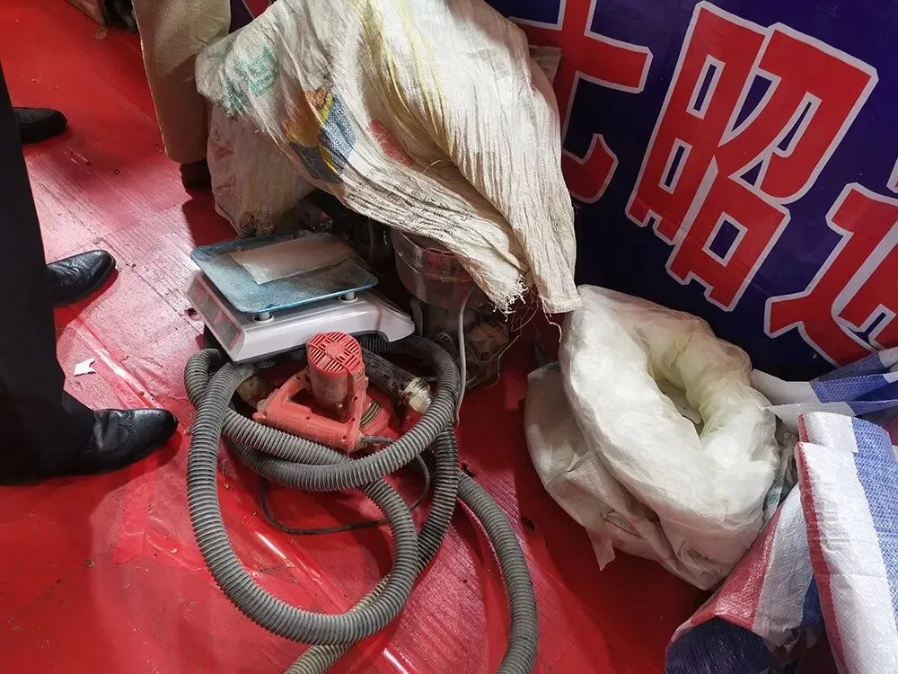 经过执法人员的搜查,在该摊位的下方,还发现多个麻袋中装有大量不明粉末,而刚刚王女士购买的西洋参、石斛完好无损地放在下方。由于这些粉末没有标识,执法人员询问该商贩,“请你解释这些麻袋里的粉到底是什么粉?请你立即解释!”做了亏心事的商贩,在执法人员的质疑下显得非常惊慌。