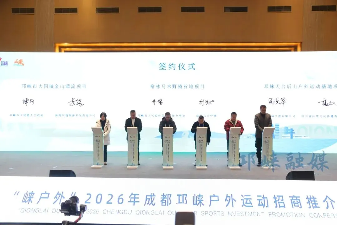 现场还举行了重点项目签约仪式。邛崃市就漂流、马术、步道三大领域的项目合作与相关企业签署了协议,标志着“崃户外”IP从战略规划迈向项目落地,为产业生态注入了强劲动能。