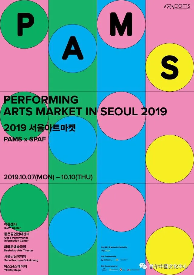 2019年10月7日至10日,由韩国文化体育观光部直属机构——韩国艺术经营支援中心主办的韩国每年最大规模国际演艺交易盛会“2019首尔演出艺术交易会”(PERFORMING ARTS MARKET IN SEOUL,简称PAMS)在首尔多地隆重举办 。来自韩国和英国、加拿大、西班牙、丹麦等世界各地演艺机构参加此次展会。首尔中国文化中心代表中国首次参展,助力中国演艺作品走出去。