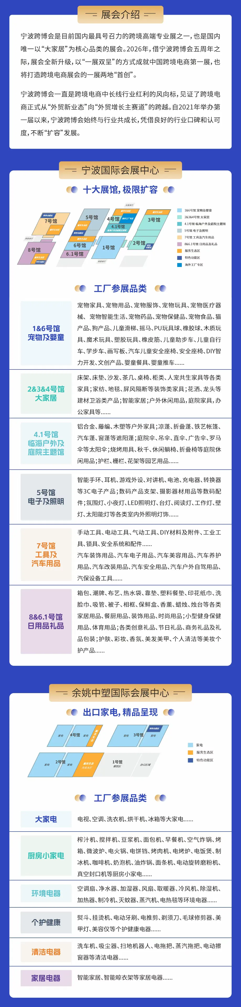 作为跨境电商行业风向标,反映长线红利趋势,推动 “外贸新业态” 向 “增长主赛道” 升级。:为外贸企业提供选品采购、渠道拓展、供应链对接的一站式平台,助力企业抢占全球市场,推动宁波及周边地区跨境电商产业的发展,提升宁波在跨境电商领域的影响力和竞争力。宁波国际会展中心 1-8 号馆、余姚中塑国际会展中心 2-3-4 号馆展会是企业与同行、上下游企业交流互动的良好平台,企业可与其他参展商、行业专家、采购商等深入交流,分享经验、探讨合作机会,有可能找到合作伙伴,共同开发市场、研发产品或开展其他形式的合作,实现资源共享、优势互补,促进企业共同发展!
