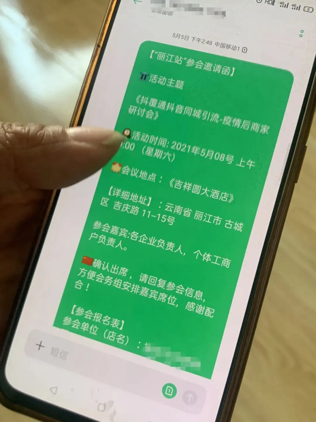 前几日,读本君接到网友报料,被一伙自称招抖音代理商的人忽悠着掏了近4万元签合同,结果和宣传的内容不符,怀疑被骗了,和她一样遭遇的,丽江还有不少人。