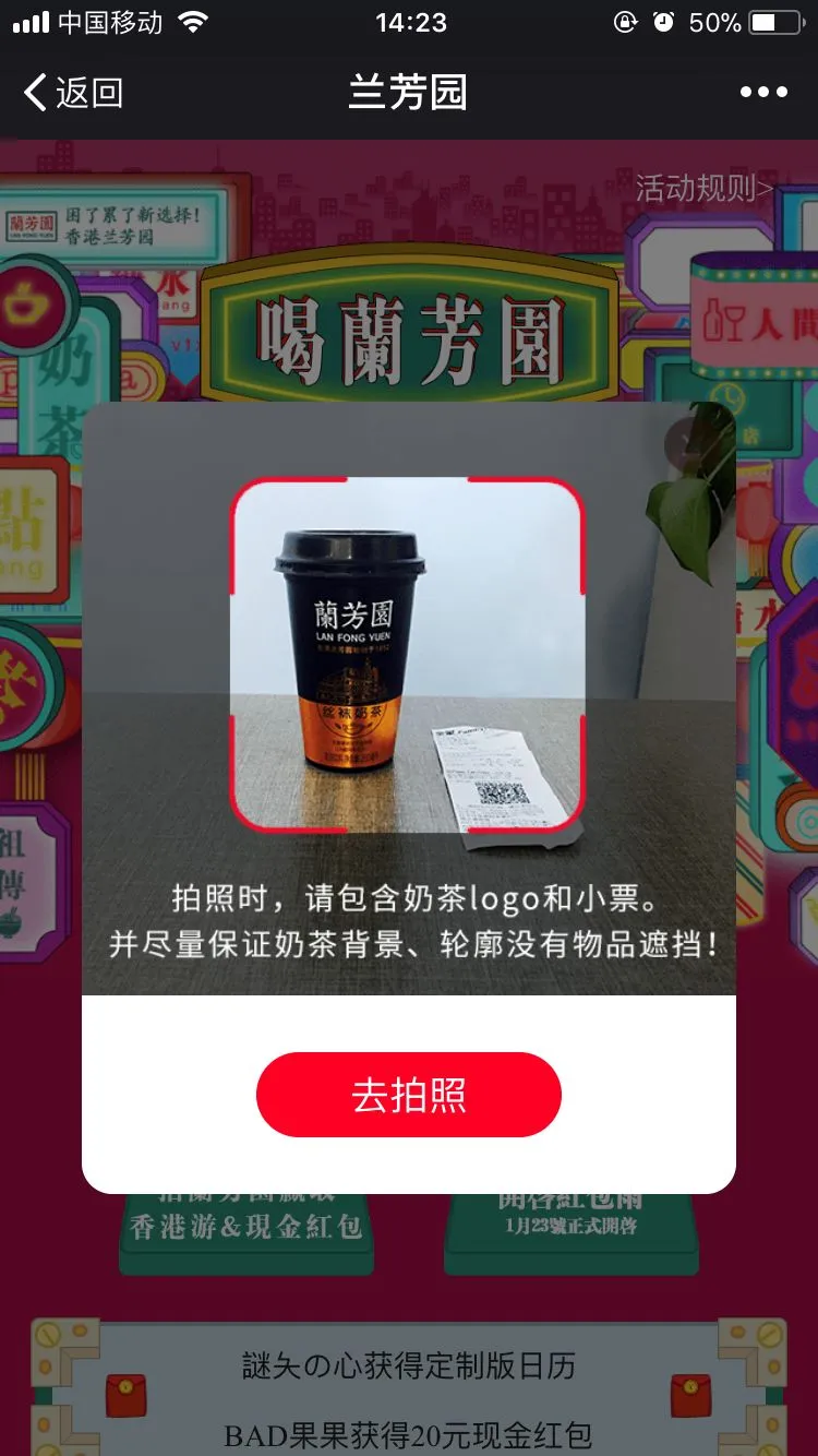 点击上传购买兰芳园的小票+兰芳园产品照片