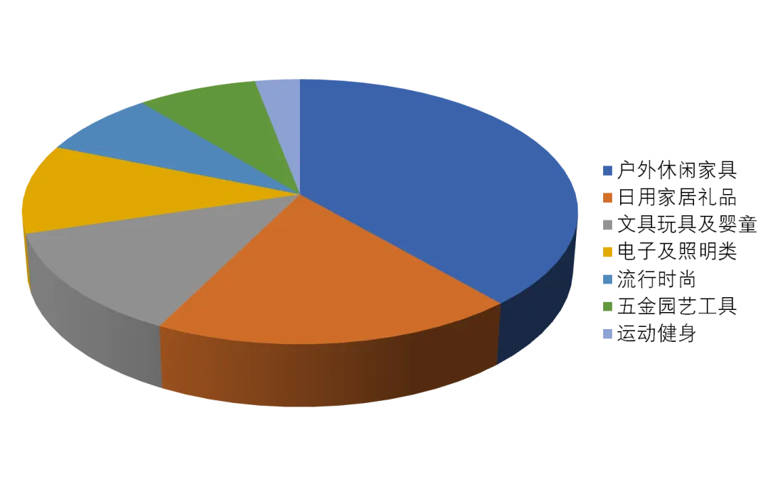 据当前数据统计,参展工厂主要为户外休闲家具类,占比为39%;其次为日用家居礼品类工厂,占比19%;文具玩具及婴童类工厂占比13%;电子及照明类工厂占比为11%;流行时尚类及五金园艺工具类工厂各占比8%;另有运动健身类工厂,占比3%。