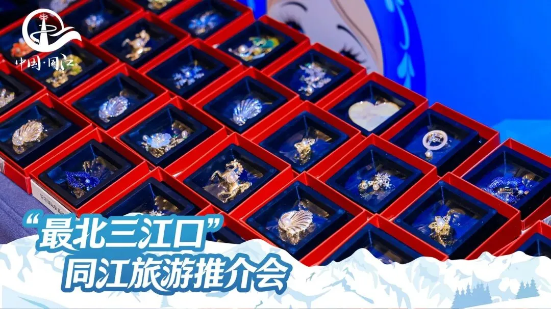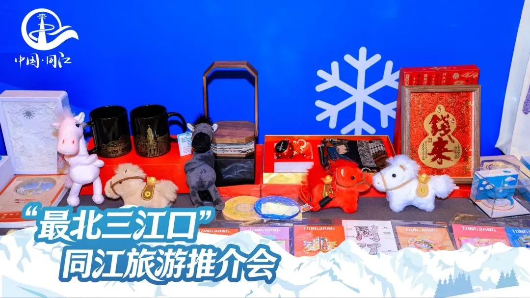 现场通过文创产品展示、宣传片轮播、赫哲族舞蹈《赫尼那》迅速营造出同江冰雪与民俗氛围。