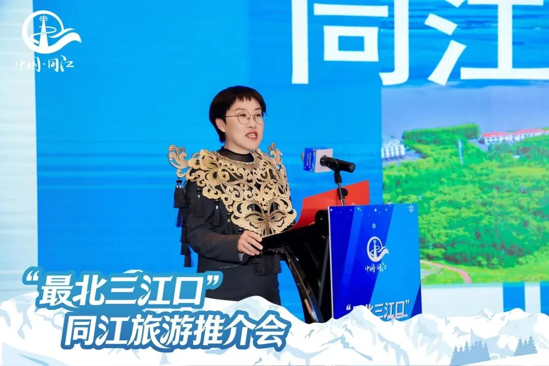 同江市政府副市长人选赵清兰首先致辞,她表示:近年来,同江以实际行动践行习近平总书记“冰天雪地也是金山银山”的重要指示精神,以自然生态为底色,以民族文化为内核,以跨境风情为特色,构建起 “春赏江开、夏逐林海、秋观稻浪、冬戏冰雪” 的全时文旅格局,让 “冷资源” 持续孕育 “热产业”,让 “好风光” 不断催生 “新经济”。