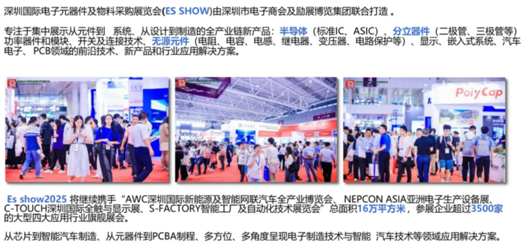 ES SHOW深圳国际电子元器件及物料采购展览会,2025年10月28日-30日将在深圳国际会展中心(宝安新馆)隆重举办!