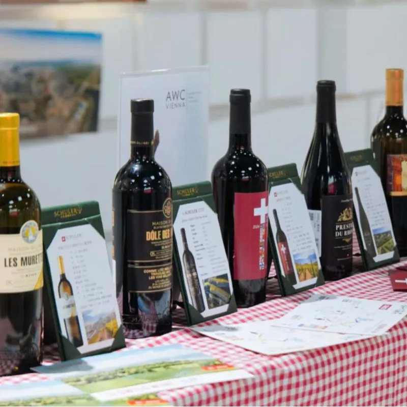 活动现场,来自瑞士多个产区的酒庄及品牌集中亮相,主要参与的品牌有:瑞士轩乐酒业集团, E.I.S. (Suisse),瑞士古博乐苦艾酒,瑞士梦莱酒厂。瑞士葡萄酒促进会代表现场进行品牌推介,系统介绍瑞士酒类的产区特色与酿造传统。在品牌主理人带领下,与会嘉宾品鉴了多款代表性瑞士佳酿,深入了解其风味特点与文化背景。