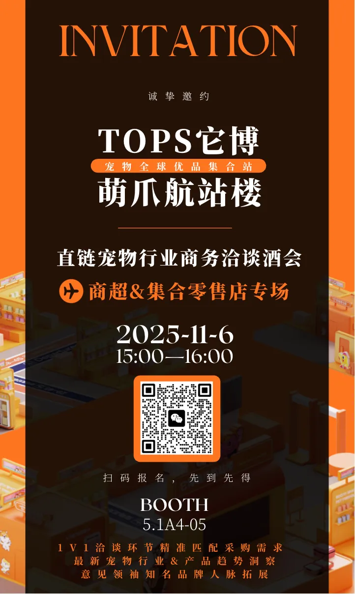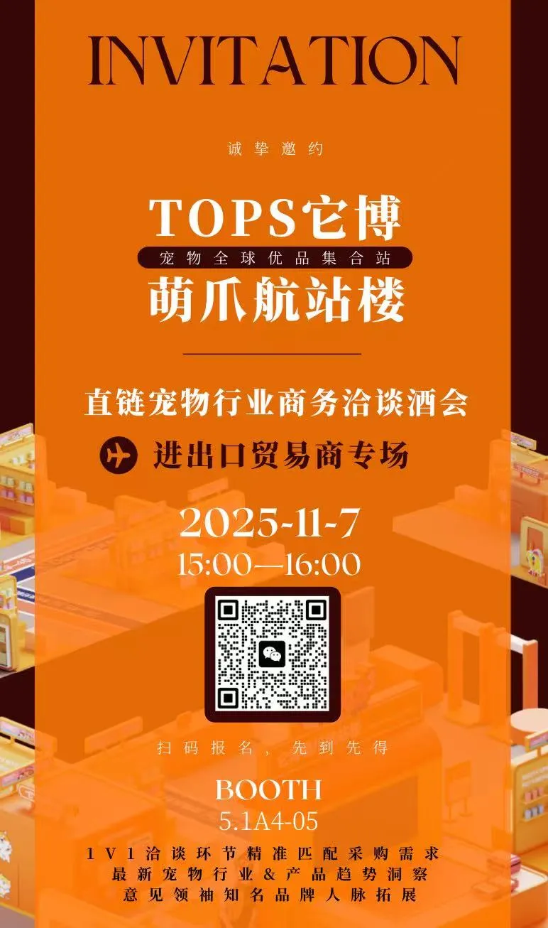 进博会汇聚了包括重要进出口商、连锁商超、电商平台、区域代理商等在内的核心采购力量。本届展会期间,“它博萌爪航站楼·全球宠物优品集”展示区将特别组织两场精准对接活动——“百货商超供需对接会”和“进出口贸易商供需对接会”。这两场定向活动将汇聚全球优质宠物品牌与核心采购商,为参展企业和专业买家搭建高效的一对一洽谈平台,欢迎各界相关采购组织莅临洽谈。