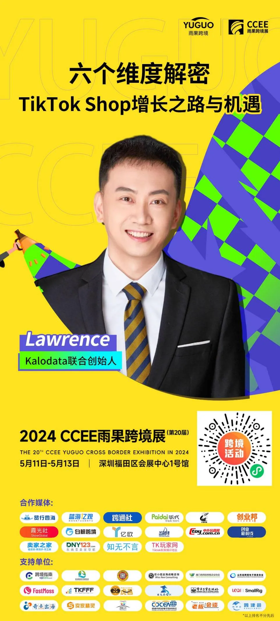 本次CCEE展会,我们特别邀请到Kalodata联合创始人 Lawrence出席,他将带来《六个维度解密TikTok Shop增长之路与机遇》的主题分享!【点击此处或或扫描下方海报二维码即可快速报名】