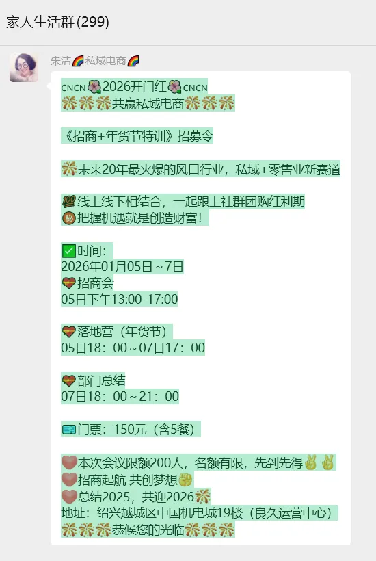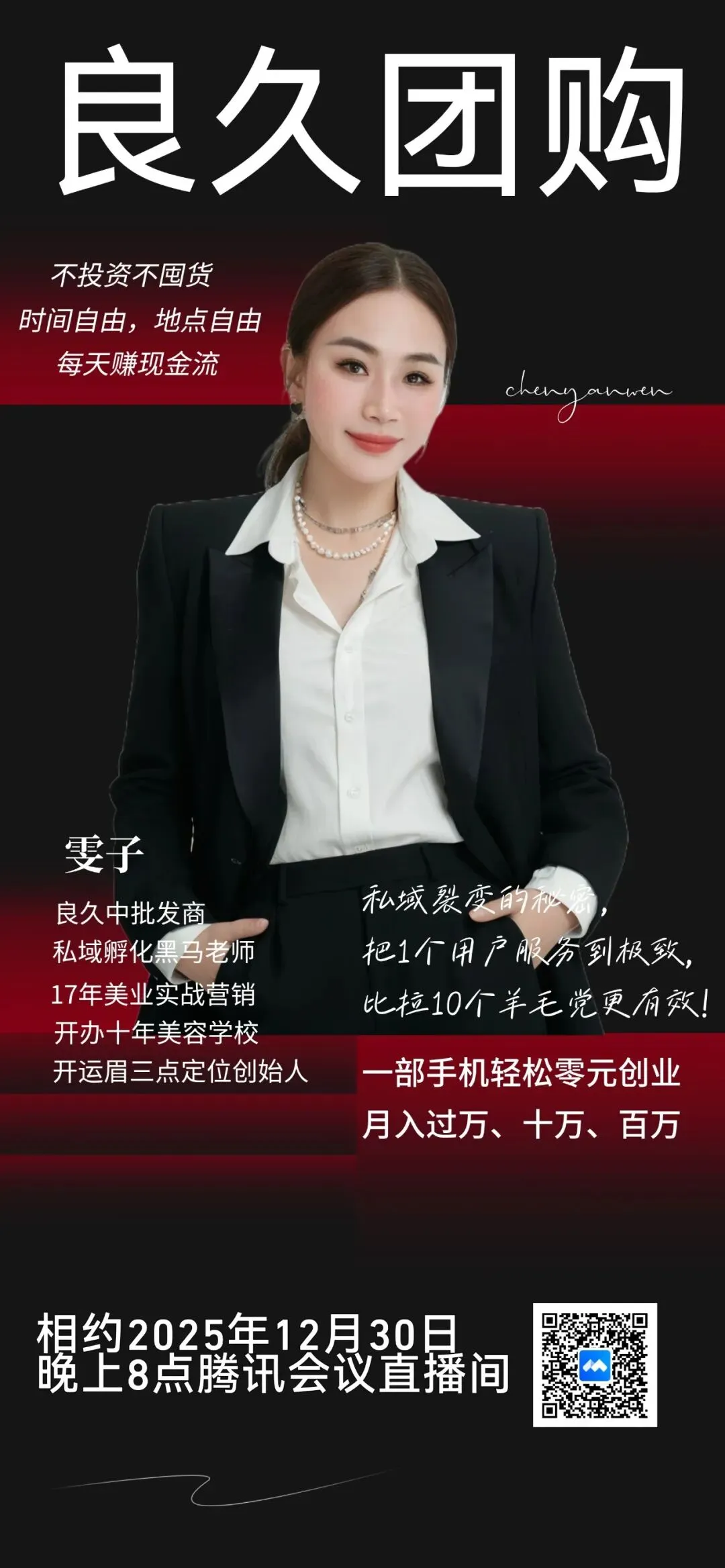 晚上招商会上分享的中批发是雯子老师。第一次听她的课。她介绍自己如何进入良久的,老公一个月都说服不了她,反而是大批发的收入与别墅豪宅刺激到了她。发愿要用心用力做良久。目前,她老公是准大批,她身份是中批,但下面已经孵化出好几组中批,上大批也是大概率的事情,是时间问题。这一点毫不怀疑。听她讲良久公司和产品,讲良久的收入制度,讲良久的核心优势和竞争力,讲为什么良久值得选择,语速快,就像聊家常,一点也不觉得高深和难懂。晚上回到家,洗漱过后打开电脑,已经是十点半。看工作群里雪儿老师发出来好几个文件,有文字,有视频,绍兴运营中心又搞大事了!2026第一召集令,听起来看起来让人激动不已。好想去,好想去再次感受下现场的气氛与能量,但时间不允许,待到我这段时间沉淀过,反省过,拿到个结果,再去向老师们汇报吧!今天的安排同样紧凑与充实。上午,在广东省中医院等到阚叔,这位89岁的长者通常都会在每周二去看病拿药。我带他去惠福路与诗书路交界的某中医门诊参观考察。这家新中医综合体,集养生馆膳食馆中医馆于一体,经营一年有余,0到1已经跑通,上周参加过招商会,听完创始人李总的分享,对他振兴中医的壮志雄心钦佩不已。所以这些天我是有意带人过来,寻找同道者。中午,阚叔请我在龙津东一间川菜馆吃饭。点了酸菜鱼、夫妻肺片和回锅肉,菜品好,味道正,阚叔说,这家比以前我们在水西吃的那家要正宗。我们在店里吃了接近俩小时,可前前后后看到的食客只有三桌,外卖小哥进进出出的倒不少,可见销售和消费全在线上了。趋势呀,正如我选择的良久一样,选择对了,接下来就是大干加巧干的事。下午,与阚叔在一德路站坐上6号线地铁,他打道回府——泰康粤园的家,我则赶下一场,到五羊新城子曰店喝茶。今天约了贡总和谭总一块喝茶,这也是我们2025年最后一次聚会了,上一次,是几个月前的事了。下一次,就是2026年。我和贡总、谭总各自在自己的领域忙碌着。我介绍良久,贡总说他的deekpseek,谭总说他的优管。三个人一交流,彼此就多获得了两份信息,这样的交流真是高效社交。我们喝到七点五十分才结束。就给我坐八点四十的楼巴预留了三十多分钟的时间。不过足够了。从五羊新城坐5号线到珠江新城,一站地,不出站转3号线,在石牌桥A口出来,用时不到二十分。市中心区的交通实在是太方便的。今天周二,总是给人周五的感觉。明天周三,也是2025年的最后一天。人生过半,黄土埋身,早已没了倒计时迎新年的浪费与激情,日子是越过越踏实,朴实和佛系。人过中年,都是在负重前行,没有选择,只有责任。欢迎围观我的朋友圈,手机号13450365373