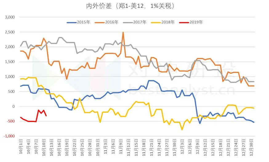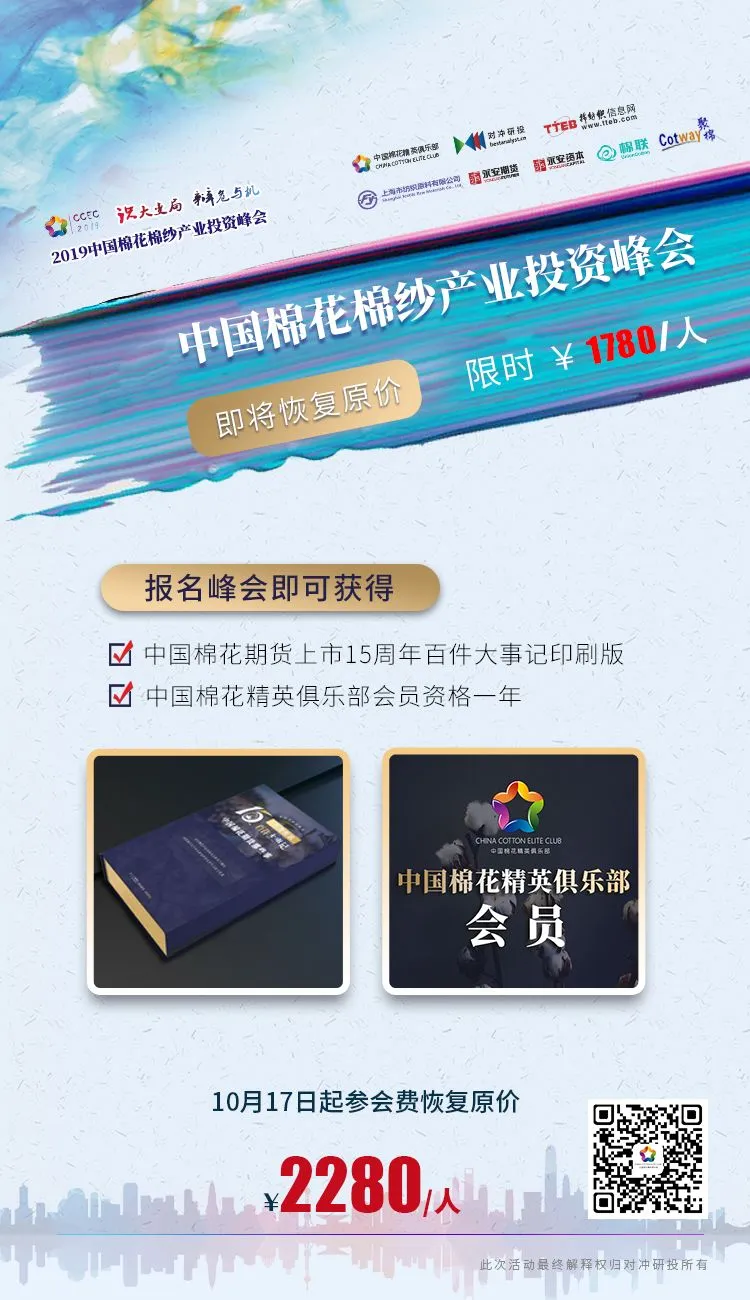 在中美磋商取得实质性进展中有两条内容涉及棉花,即:(1) 推迟计划于10月15日对2500亿美元进口加征关税;这意味着中美毛衣战不会再恶化,同时中国购买美棉的概率增大。鉴于中美棉价倒挂,只有中国国储会采购轮入。02