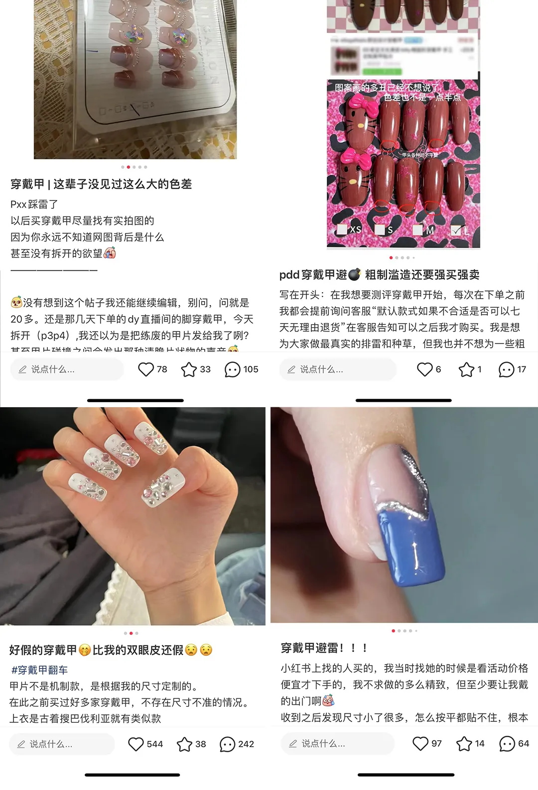 用“低价劣质”的打法割韭菜,消磨消费者的信任,让消费者不再愿意回购,让穿戴甲成为一次性使用的产品,这不是健康发展!