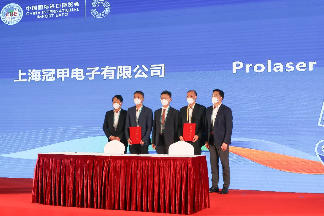 签约仪式上,上海盒成食品有限公司与HOFSETH公司、上海冠甲电子有限公司与Prolaser公司正式签约,现场达成的意向采购总额达到3000万美元。