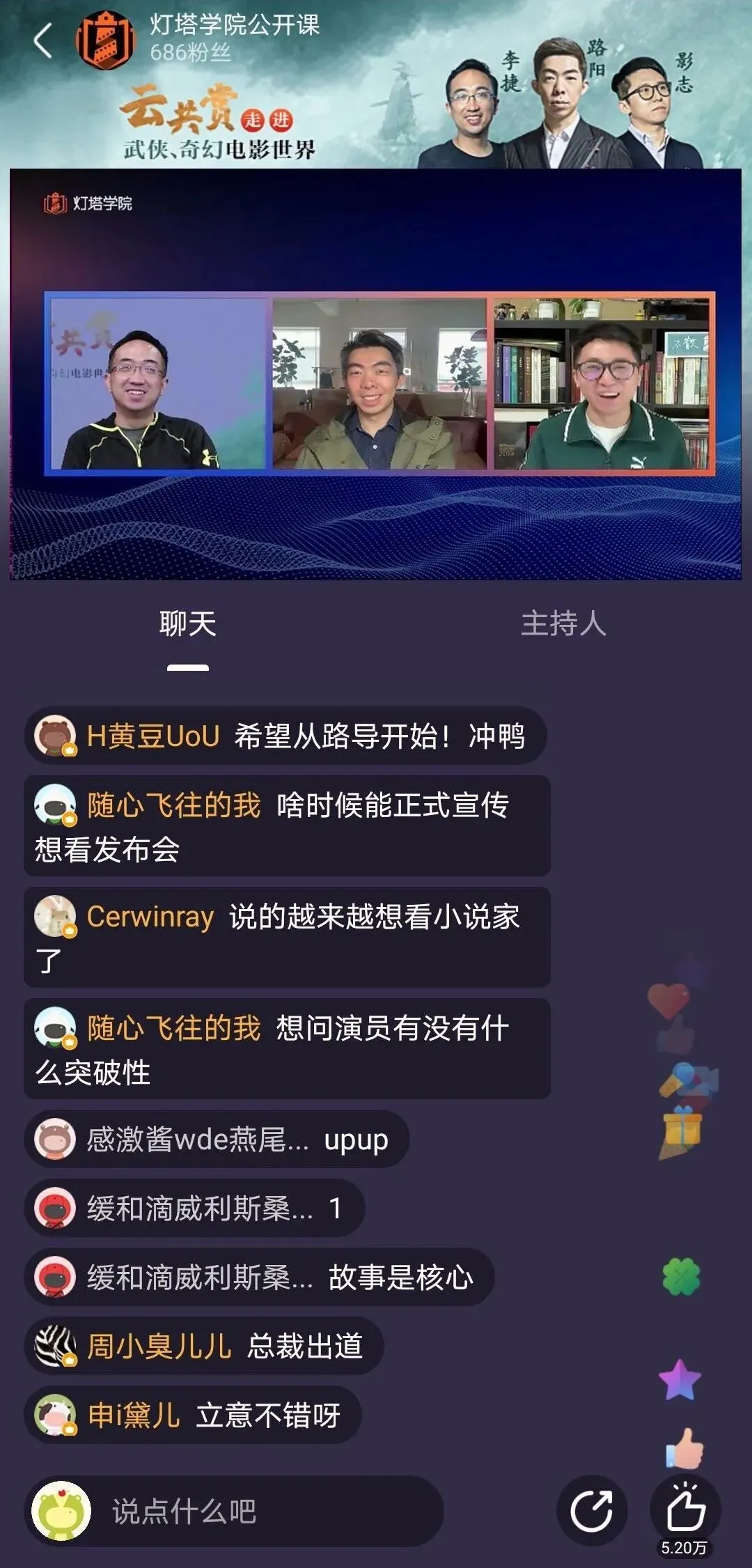 日前,导演路阳来到了灯塔学院的直播间,和大家聊起了他那部还处于后期阶段的新片《刺杀小说家》。同他一起线上开聊的还有阿里文娱电影演出业务总裁李捷和前豆瓣电影主编影志。