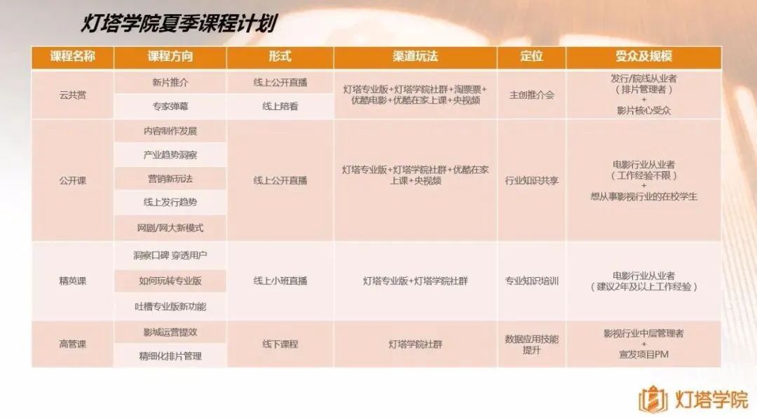 另外值此特殊时期,灯塔在行业端的动作还不止于此。根据官方消息,接下来灯塔旗下定位于知识分享平台的灯塔学院还会继续发起此前受到广泛欢迎的线上公开课活动,此次将在今年夏季推出云共赏、公开课、精英课、高管课四大种类的线上课程供大家学习充电。在这些针对不同群体开展的课程中,我们看到了灯塔学院日益完善的服务能力和更加广泛的覆盖范围。