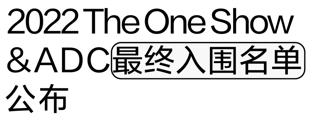 The One Club for Creativity 近日宣布了2022The One Show国际创意奖和第101届ADC年度设计大奖的最终入围名单。进入最终入围名单的作品,代表其获得了金、银、铜或佳作奖项。两个大奖的颁奖典礼与获奖名单都将在5月16到20日举办的2022纽约国际创意周上举行并宣布。