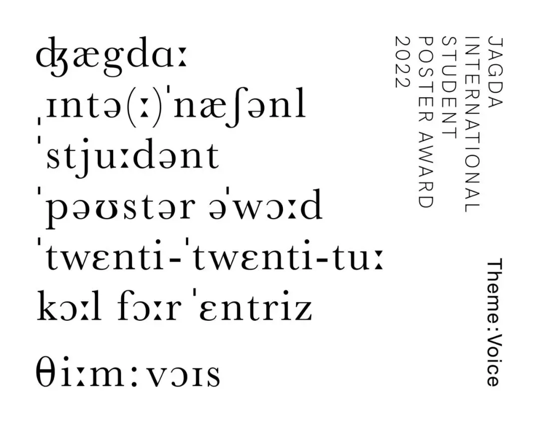 5月1日起,2022年度JAGDA国际学生海报征集正式开启。本年作品主题定为“Voice”,主办方规定提交作品中需包含该主题词,形式则不作限制。有意参与者须在7月31日前提交相关参赛作品。