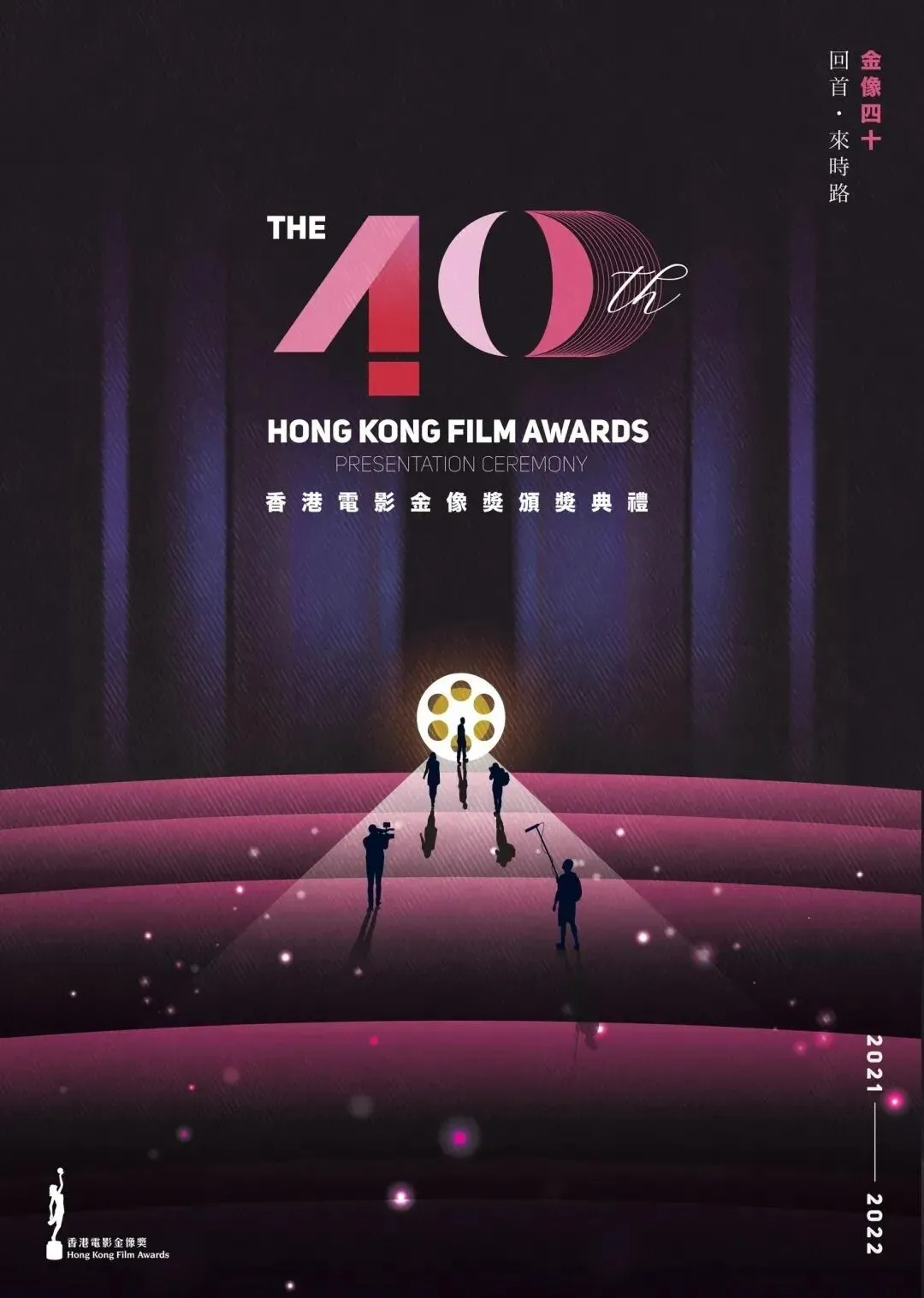 5月4日,2022年第40届香港电影金像奖主视觉海报正式公布。本届主视觉海报和以往相同,依然采用设计征集的形式产生,冠军作品由香港知专设计学院的郭翠莹创作完成,以“回首·来时路”作为发想,聚焦前人为电影界付出的努力,并回顾过去共同经历的种种。