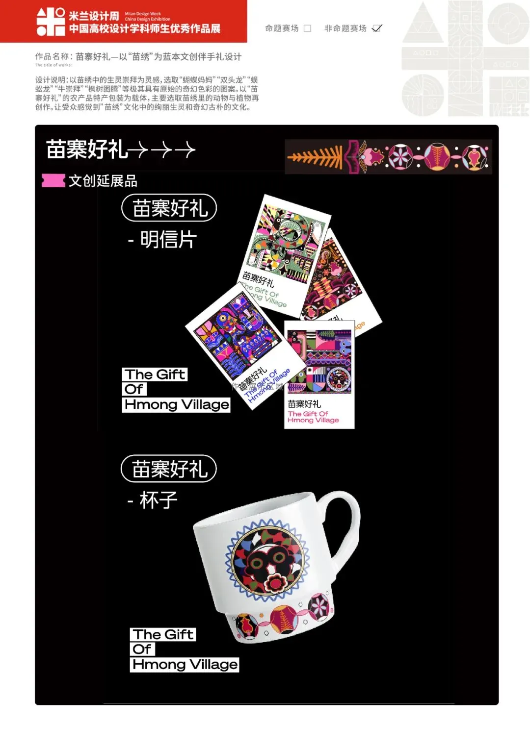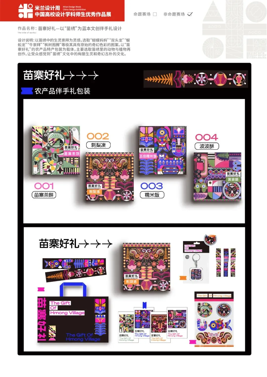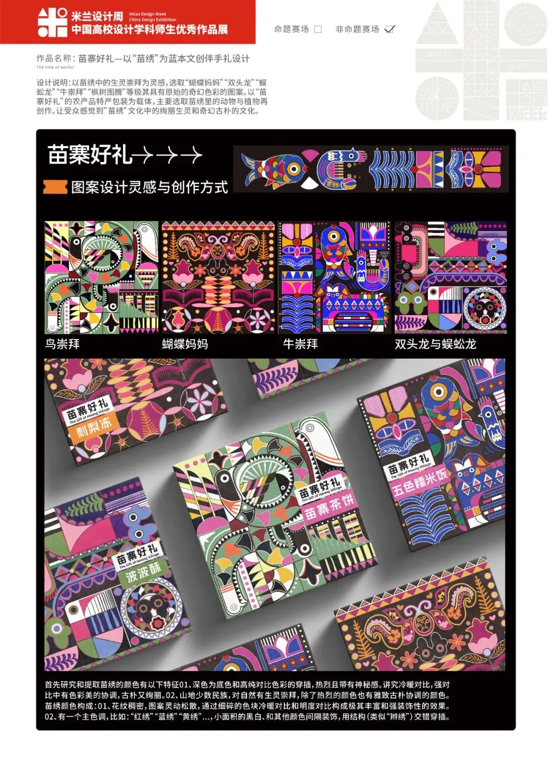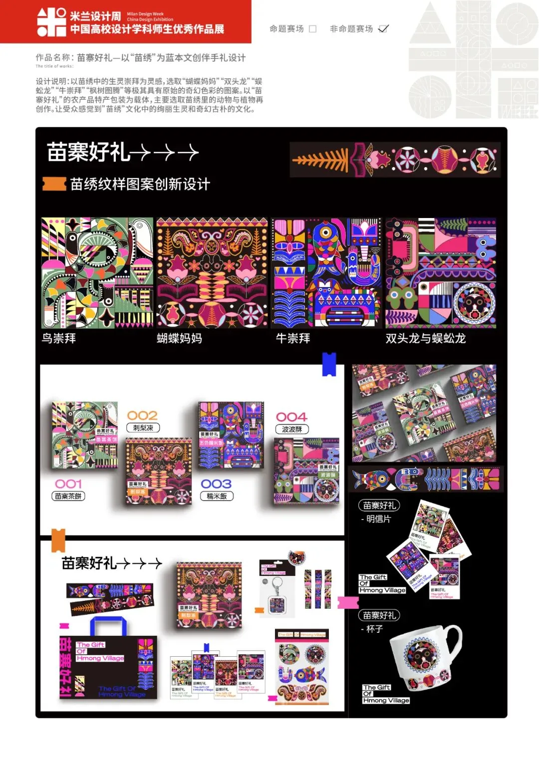 作品名称:《苗寨好礼—以非遗“苗绣”为灵感文创伴手礼设计》