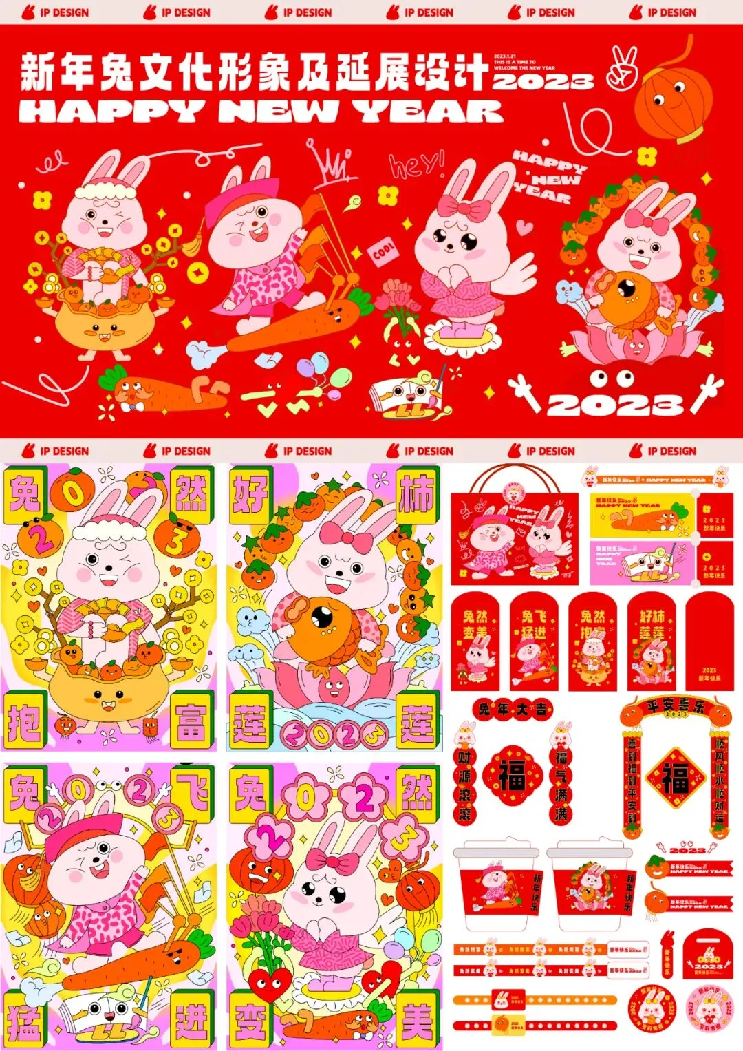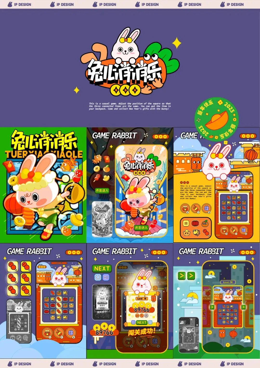 基于新年的节日文化与生肖兔结合,设计新年兔的IP形象、及线上小游戏延展设计、红包周边延展设计。