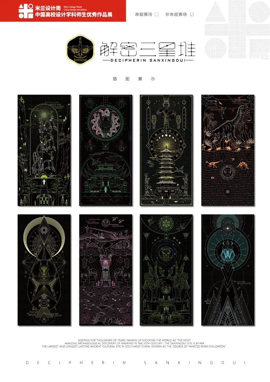 沉睡数千年,一醒惊天下。作为“人类20世纪最惊人的考古发现”,三星堆遗址是迄今为止中国西南地区一处面积最大、延续时间最长的古文化遗址,被誉为“长江文明之源”、“世界第九大奇迹”。我对三星堆文化一直很感兴趣,为了弘扬中国传统文化,增强民族文化自信,所以创作了这套作品。