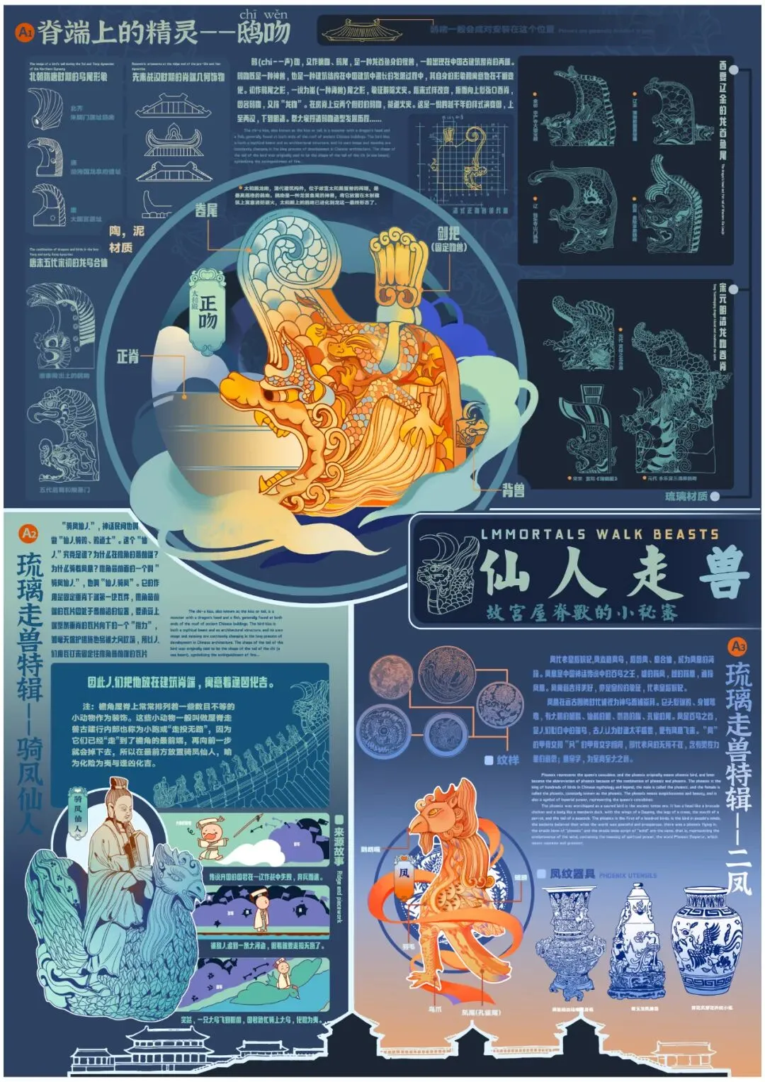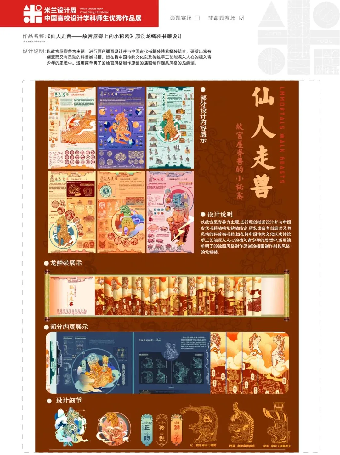 作品名称:《仙人走兽——故宫屋脊上的小秘密》原创龙鳞装书籍设计