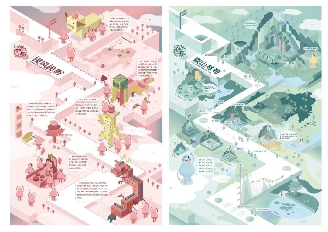 以非遗苗绣中的生灵崇拜为灵感,选取“蝴蝶妈妈”“双头龙”“蜈蚣龙”“牛崇拜”“枫树图腾”等极其具有原始的奇幻色彩的图案。以“苗寨好礼”的农产品特产包装为载体,主要选取苗绣里的动物与植物再创作。让消费者在农产品伴手礼中感觉到”苗绣”文化中的绚丽生灵和奇幻古朴的文化。